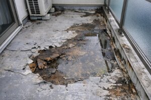 頻繁な雨漏りや内部への水の侵入 下地の劣化が進行している可能性が高く、かぶせ工法では対応できないため